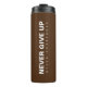 Personalizable Nunca Renunciar A Nunca Renunciar Texto Elegante Moderno Simple Motivacional Plantilla De Oferta De Oferta Añadir Imagen De Carga De Texto, Cargar Foto O Logo De Negocio, Nombre De La Compañía Promocional Tumbler Termal Marrón Y Blanco Clásico.