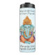 Garrafa térmica com a imagem do deu hindu Ganesha e os seguintes dizeres: “Onde quer que esteja Ganesha, lá existe Sucesso e Prosperidade... onde quer que haja Sucesso e Prosperidade, lá está Ganesha”. (frase hindu)