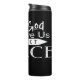 This powerful black and white design states "Only God Can Give Us PERFECT PEACE." "Only God Can Give Us" is in white script, while "PERFECT" is bold with an arrow pointing to "PEACE" which is large and textured. The overall design emphasizes that true and complete peace comes solely from divine source.
