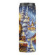 This magnificent artwork showcases an opulent red and gold Christmas train, exquisitely detailed, journeying through a twinkling snow-covered village. Illuminated passenger cars glow warmly as flakes fall under a guiding star. This grand scene beautifully captures the luxurious magic and festive splendor of a truly extraordinary holiday voyage, perfect for seasonal display.