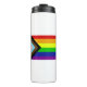 La variación "Progreso" de la bandera arcoiris añade un chevron a lo largo del puente que presenta rayas negras, marrones, azul claro, rosas y blancas para llevar a esas comunidades (personas marginadas de color, personas trans, y quienes viven con VIH/SIDA y los que han sido perdidos) al frente; "la flecha señala a la derecha para mostrar el movimiento hacia adelante, mientras que estar a lo largo del borde izquierdo muestra que todavía hay que hacer progresos".