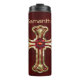 Un bonito vino y un diseño de cruz gótica dorada.