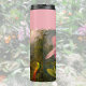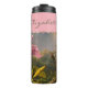 Este tumbler termal de orquídeas rosadas de bonito presenta una versión paradisíaca del asombroso trabajo de la selva amazónica de Martin Johnson Heade. El nombre de su destinatario o de su destinatario está monogramado en la parte superior de un rosa de coordinación, iniciado por un borde dorado. Esta obra de arte incluye el cierre de una orquídea cattelya rosa exótica con 3 colibríes brasileños. Se aplicó un filtro simulado de foto/acuarela sobre la imagen para sacar a la luz su luminosidad. Este hermoso trabajo de 1871 es de dominio público y está disponible en Flickr commons por Swallowtail Garden Seeds. Este tumbler sería una manera encantadora de mantener tu refrescante bebida helada, tu bebida caliente demasiado caliente caliente, o hacer un gran regalo.