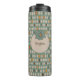 Este tumbler termal giratorio presenta un patrón oval retro verde azulado y naranja silencioso y una flor simple con tu nombre. Si necesitas ayuda para encontrar elementos coincidentes en este mensaje de colección retro Suzanne a través de Zazzle chat o email suzparada@gmail.com.