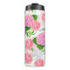 Patrón acuático con flores y teta azul pintado con acuarelas.