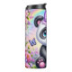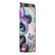 Este encantador ilustracion cuenta con un adorable panda bebé con grandes ojos azules, con una proa morada en la cabeza. El panda se asienta en un terreno de césped rodeado de un vibrante borde de flores rosas, moradas y azules. Dos mariposas con las alas púrpura y azul revolotean a ambos lados del panda, y una arcada arcoiris colorida al fondo.