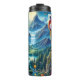 Este caprichoso ilustracion cuenta con un panda rojo sentado en una roca en un mágico paisaje montañoso. La escena incluye una gran luna llena, una cascada y un río sinuoso. El fondo es un bosque denso con linternas brillantes que crean un ambiente encantador y sereno.