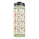 El panel de inspiración retro caprichosa presenta pájaros rosados en ramas con flores amarillas rodeados de un patrón de cuadrícula de puntos verdes