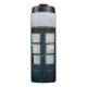 TERMO PANEL DE PUERTA DE MADERA AZUL EN EDIFICIO BLANCO