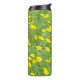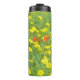 Ilustracion acuático con dos amapolas rojas y flores amarillas en el prado