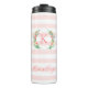 Este divertido diseño de moda presenta un fondo de rayas blancas y rosas con una colorida corona floral. Personalice el diseño con su nombre y monograma u otro texto. Utilice las herramientas de diseño para elegir cualquier color de fondo, editar los tipos de letra y los colores del texto o cargar sus propias fotos para crear una botella monogramada de agua de vaso monográfico monogramada única personalizado.