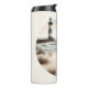 Una elegante joven vestida de blanco que recorre la orilla de arena, su gorra se inclinó contra la brisa mientras contemplaba un faro a rayas que se sostenía fuerte contra las olas. Gafas suaves enmarcan el primer plano mientras las aves marinas y un velero se deslizan por el horizonte, lo que añade un sentido de calma al paisaje costero. La suave acuarela combina el romanticismo y la serenidad, creando una atmósfera de costa atemporal inspirada en la cabaña, nostálgica y de ensueño. La IA generó obras de arte.