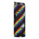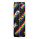 Patrón colorido sobre fondo negro. Cinta compacta y cola arco iris.