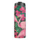 Patrón de acuarela sin fisuras con aves flamingo y hojas tropicales