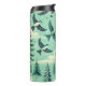 Serenidad de la naturaleza, con un diseño sin fisuras, con árboles verdes verde azulados, pájaros en aumento y un frondoso follaje. Este diseño refleja la tranquilidad de un entorno forestal.