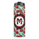 Un patrón de ilustracion de acuarela ai de cerezas rojas retro, follaje verde salado y colmenillas a cuadros azules personalizada tumbler.