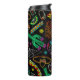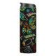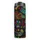 Patrón de Fiesta de Arte de la Línea México alegre y colorido, compuesto por elementos típicos como calaveras de azúcar, maracas, guerrero inca, guerrero azteca, pimienta chile, cactus, pirámide, cal, tequila, sombrero, tacos, un camaleón, elementos florales étnicos y decorativos. Original Vector Art Copyright BluedarkArt.