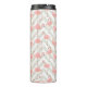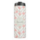 Elegante y divertido, este diseño termal personalizado de tumbler está cubierto por un patrón de flamencos rosados sobre rayas de zag de chevron-zig grises y blancas de moda. Edite el monograma con su nombre deseado y inicial para un regalo o tratamiento para el personalizado.