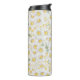 Taza térmica con patrón de flores blancas acuarela.
