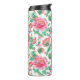 Flores elegantes y brillantes de color rosa grisáceo y hojas verdes sin fisuras. Fondo blanco modificable.