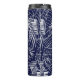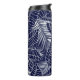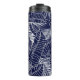 Termo patrón de hojas tropicales en el fondo azul marino