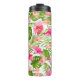Hermosas hojas y flores tropicales verdes y rosas, sin fisuras, de repetición