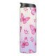 Diseño de patrón sin fisuras de mariposas y flores rosadas.