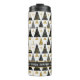 Si se preguntan qué combinaciones de colores elegir para la decoración de sus Navidades y los suministros de envoltura de regalos este año, he creado colecciones de patrones de coordinación para hacer la vida un poco más fácil. Este tumbler termal Navidad presenta un diseño gráfico moderno de pequeños árboles de Navidad en un patrón de estilo geométrico de negro y oro con una plantilla para añadir tu texto. Buscar ID1009 para ver otros productos y patrones en este esquema de color.