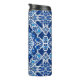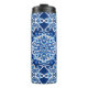 Tumbler termal en un patrón de ocho puntas, mosaico, estrella en índigo oscuro y azul cobalto, acentuado con blanco