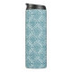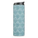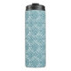 Un Tumbler Termal de moda, con un estilo étnico, tradicional Ogeo en Verde azulado sobre un fondo blanco que se puede cambiar si se desea. Este patrón, que forma parte de la colección "Boho Bazaar" de Posh & Painterly, se puede personalizar fácilmente cambiando la dirección o la escala del mosaico de patrones para un aspecto completamente diferente.