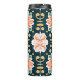 Un hermoso patrón naranja floral sobre un fondo negro.