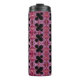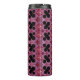 Este tumbler térmico presenta un patrón fractal con un signo de porcentaje negro en un fondo rojo, rosa y morado abstracto.