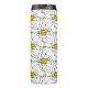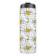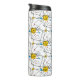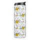 Los ángulos lineales negros y los círculos en colores primarios de rojo, amarillo y azul componen el patrón retro contemporáneo que embellece esta taza térmica que recuerda al diseño moderno de mediados del siglo XX y a la era atómica de los años 50 y 60.