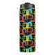 Este fresco tumbler termal presenta un patrón geométrico formado por rectángulos redondeados y círculos con recortes de desvío, que recuerdan al diseño moderno de mediados de siglo, y que ha sido actualizado con una paleta de colores variados. Personalizar fácilmente con tu color de fondo favorito.