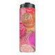 Patrón floral multicapa con flores de color y ramas sobre fondo rosa