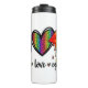 Abraza los valores de paz, amor e igualdad con nuestro elegante vaso térmico. Perfecto tanto para bebidas calientes como frías, este tumbler ecológico y reutilizable está hecho de acero inoxidable duradero y tiene un diseño aislado para mantener sus bebidas a la temperatura perfecta. Su moderna estética y su cómodo agarre hacen que sea ideal para el uso diario, ya sea que estés en casa, viajando a casa o en camino. Una fantástica idea de regalo para aquellos que aprecian la sostenibilidad y la positividad, este tumbler inspirará y elevará cada vez que beba un sorbo. Diciendo - Paz, Amor e Igualdad. Una taza colorida que muestra un signo de paz, corazón y boca.