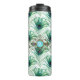 Tumbler con temática de pavo real con un monograma de gema turquesa.