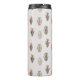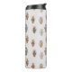 Esta botella térmica tiene un diseño moderno de mediados de siglo de conjuntos de dos contornos de diamante con un diamante sólido, en gris, oro, naranja, azul y bronceado, dispersos por el diseño en un campo de blanco roto. Si te gusta el diseño pero prefieres colores diferentes, envíame un mensaje.