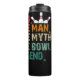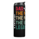 Este gráfico presenta un diseño de estilo vintage para los aficionados a la bolera. Incluye tres bolas y el texto 'DAD. EL HOMBRE. EL MITO. LA LEYENDA INFERIOR.' en fuentes apiladas y multicolores con un aspecto angustiado. Es un gráfico divertido y festivo perfecto para un padre que ama jugar bolos.