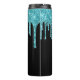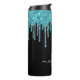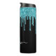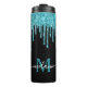 Tumbler monogramado blanco negro y Purpurina Verde azulado con plantilla de nombre de guión caligráfico.