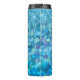 Tumbler de goteo Purpurina verde azulado con un patrón de escalas de sirena morado y azul y una plantilla de nombre personalizada.