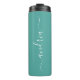 Personalice su nombre verticalmente en texto de escritura en blanco en verde azulado. Haga clic en "Editar usando la herramienta de diseño" para cambiar colores y estilos de tipo.