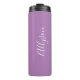 Personalice su nombre verticalmente en blanco Script Text en el fondo de Lavanda. Haga clic en "Personalizar" para cambiar colores y estilos de tipo.