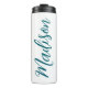 Una botella de agua inoxidable turquesa personalizada y de moda para un chica que ama los regalos simples y escritos a mano. Hermoso guión cursivo en el costado de la botella que explica su nombre en una tipografía elegante.
