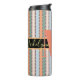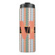 Personalizado Monograma Boda a rayas Bridesmaid Termal Tumbler Empieza el fiesta con este tierno tumbler termal que son fáciles de personalizar para tu soltera, cuando por la noche, o fin de semana de chicas! El estilo moderno incluye un nombre personalizado con letras rosas y amarillas de melocotón en un fondo verde, naranja, amarillo y negro. Personalice con dos líneas de texto personalizado y un monograma o inicial. Todo el texto puede ser editado por tu gusto.