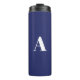 Monograma personalizado letra inicial Tumbler térmico blanco azul marino. Diseño minimalista, moderno y elegante