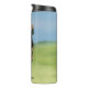 Un golfista de aspecto vintage con atuendo de principios del siglo XX tomando un columpio de su club de golf en un paisaje acuático. Un regalo ideal para el fanático del golf o el golfista en su vida. sgb01