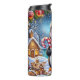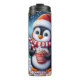 Este encantador ilustracion cuenta con un bonito y mullido pingüino con sombrero de Santa y una bufanda a rayas. El pingüino sostiene un bastón de caramelo y un tazón de cacao caliente en un mágico promontorio invernal con casas de jengibre y árboles navideños decorados, lo que crea una escena navideña acogedora y adorable.