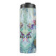 Hermoso blanco verde azulado azul rosa y verde profundo sobre un lienzo Forma y flujo que recuerda a un jardín con flores y colibríes que vuelan alrededor