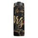 PixDezines la nueva Sra. en escritura moderna manuscrita en oro falso, personalice esta losa de mármol negro con termo tumbler de venas de oro falso.